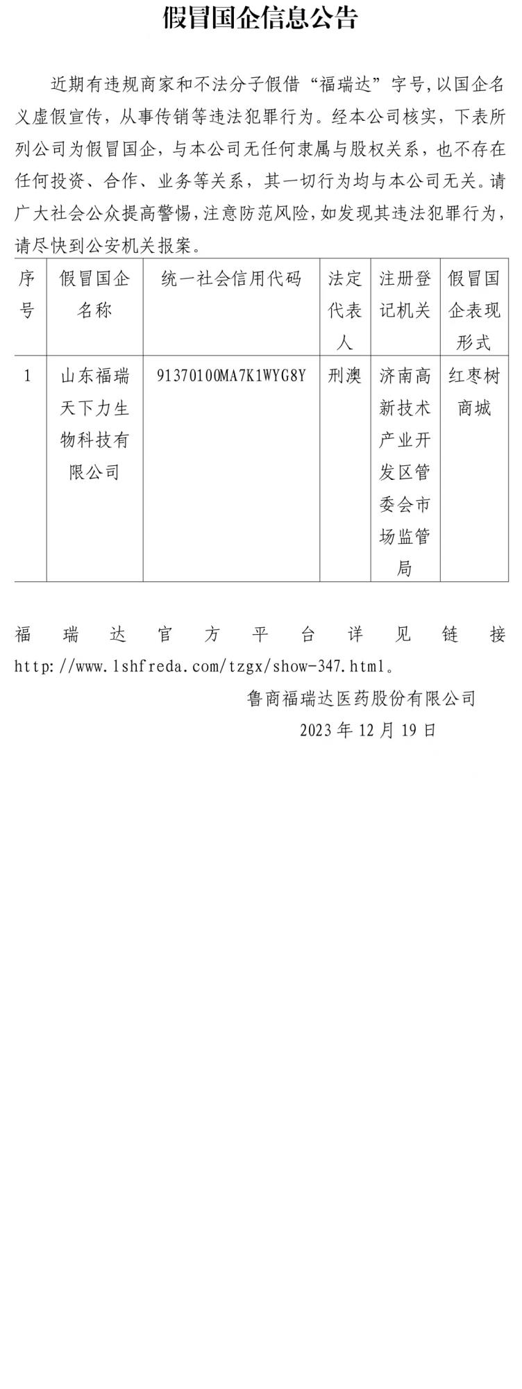 假冒國企信息公告