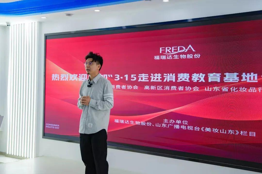 在福瑞達三樓展廳舉行的交流會上,福瑞達生物股份副總經(jīng)理白天明對各位嘉賓的到訪表示熱烈歡迎。白天明表示,在3.15國際消費者權益日走進福瑞達溯源,這場活動可謂意義非凡。一直以來,福瑞達生物股份秉承“品質為王”的匠心精神,堅持走“妝藥同源”之路,用制藥的理念標準來研發(fā)生產(chǎn)化妝品,打造的綠色工廠、透明工廠、智能工廠已經(jīng)發(fā)展成為中國北方的化妝品產(chǎn)業(yè)高地,旗下的頤蓮、璦爾博士、善顏三個品牌榮登首批“好品山東”公共品牌名錄,企業(yè)入選首批“山東省消費教育基地”。與此同時,公司也誠懇接受社會各界的監(jiān)督。希望在大家的支持下,福瑞達生物股份能夠為中國美妝的高質量創(chuàng)新發(fā)展做出更大貢獻。
